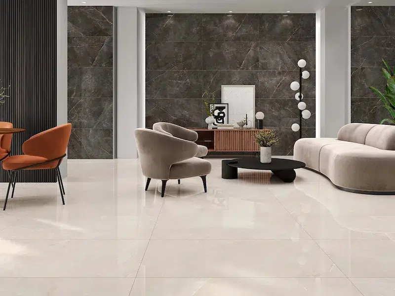 El suelo porcelánico satinado Milden Ivory ofrece un estilo elegante y moderno, ideal para crear ambientes relajantes y sofisticados en dormitorios y salas de estar.