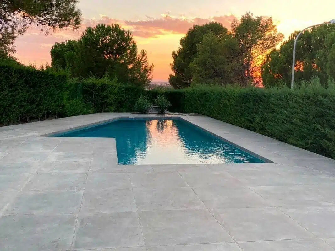 El gran atractivo del porcelánico gris no es solo su estética: también cambia la percepción del agua y conecta mejor la piscina con el entorno.