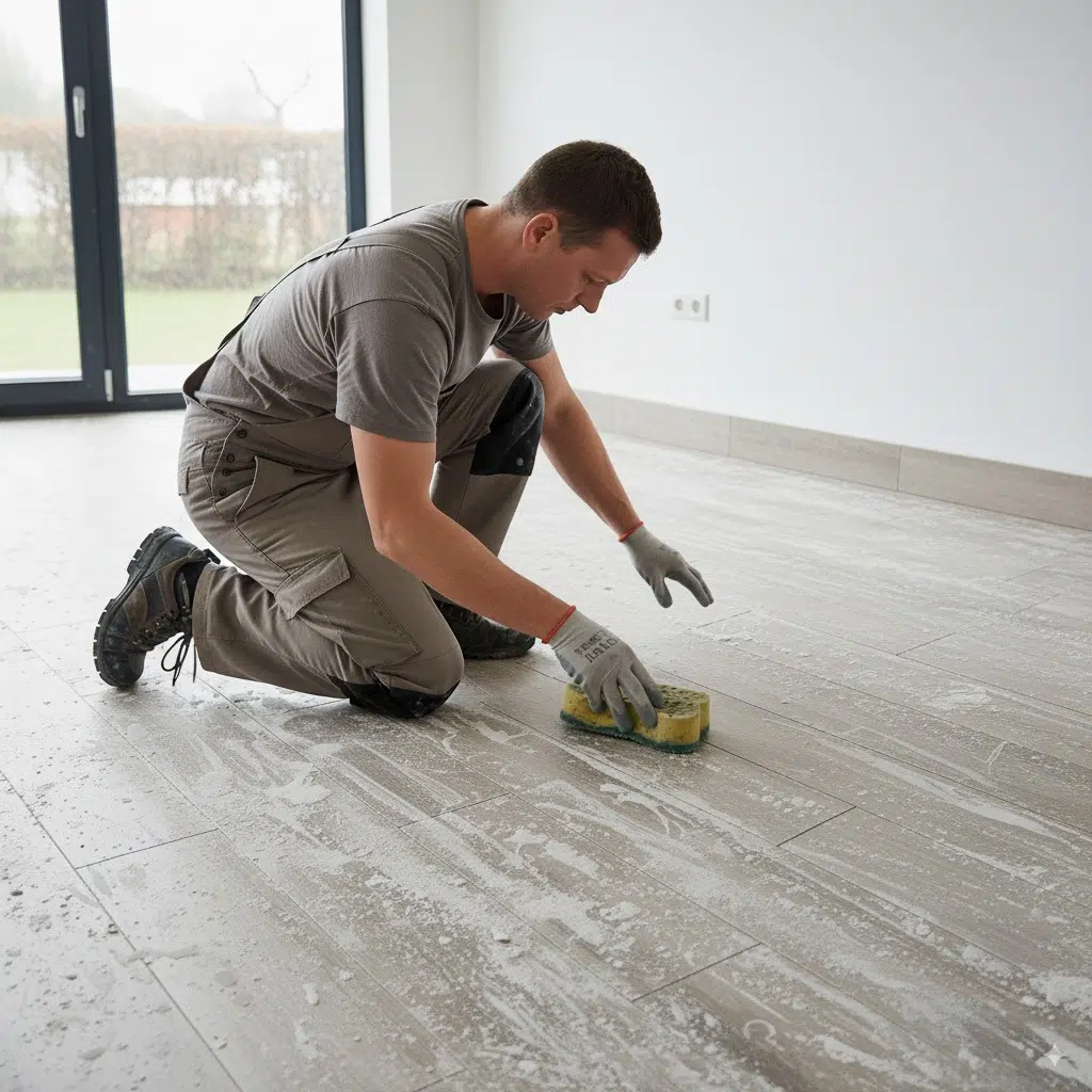 El 90 % del trabajo de limpieza fin de obra se evita limpiando los restos de lechada y adhesivo en fresco —antes de que fragüen— con trapo húmedo. Lo que se limpia en fresco no necesita ningún producto especial. Lo que se deja fraguar requiere ácido, tiempo y más esfuerzo.