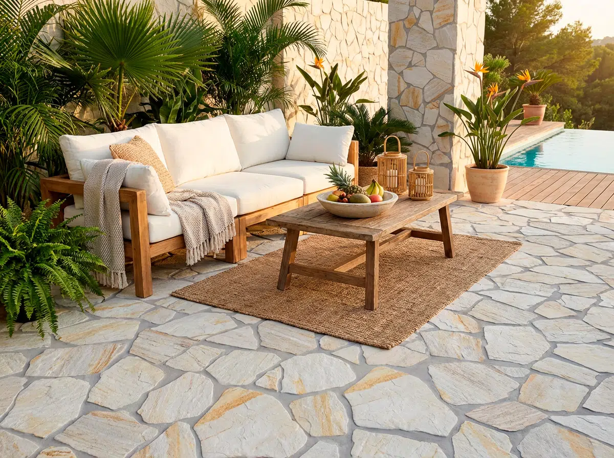 ¿Se puede usar porcelánico efecto piedra en exterior?