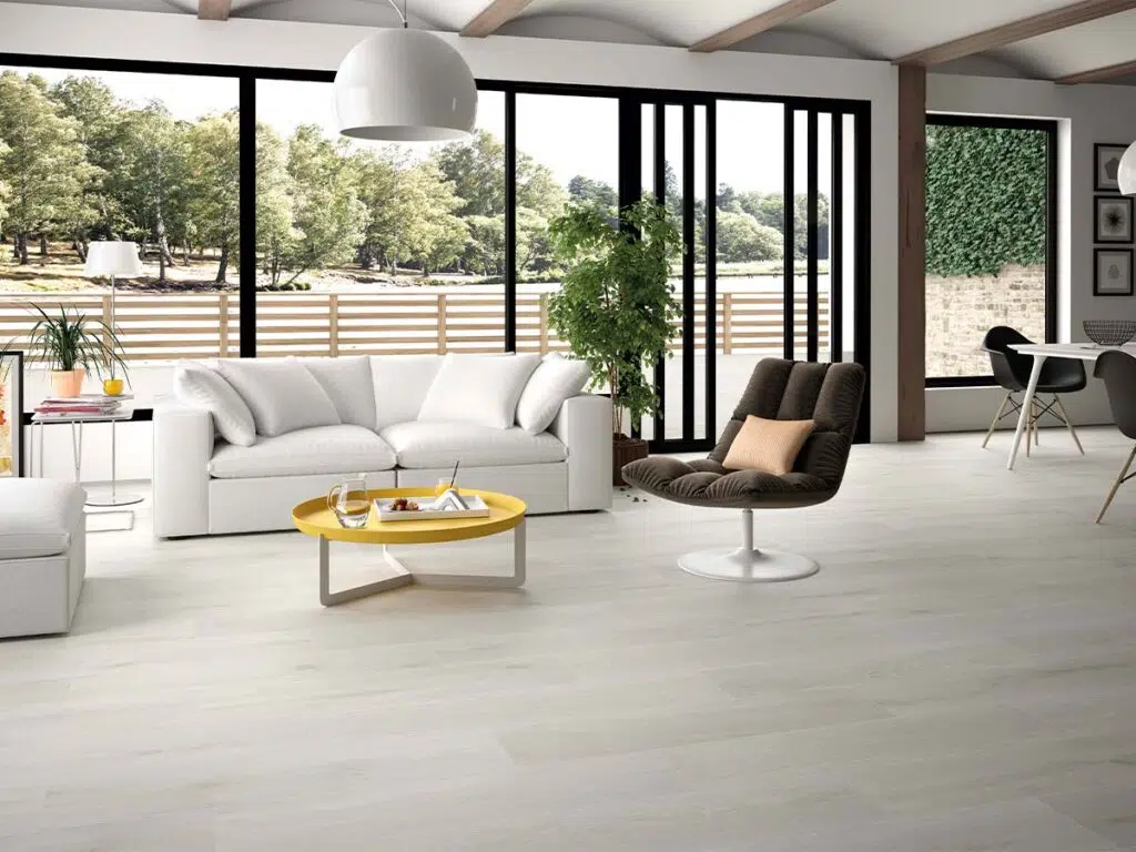 El formato de la baldosa Articwood Ice Gray es 20.5×61.5 cm y está diseñada para uso en interiores.