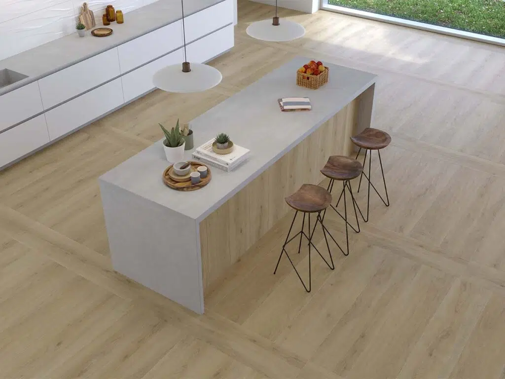 Al ser rectificado, funciona especialmente bien con juntas finas para un aspecto más continuo. En formatos grandes, se recomienda una base bien nivelada y doble encolado para una colocación óptima. Si buscas un efecto madera más natural, alterna las piezas para evitar repeticiones visuales.